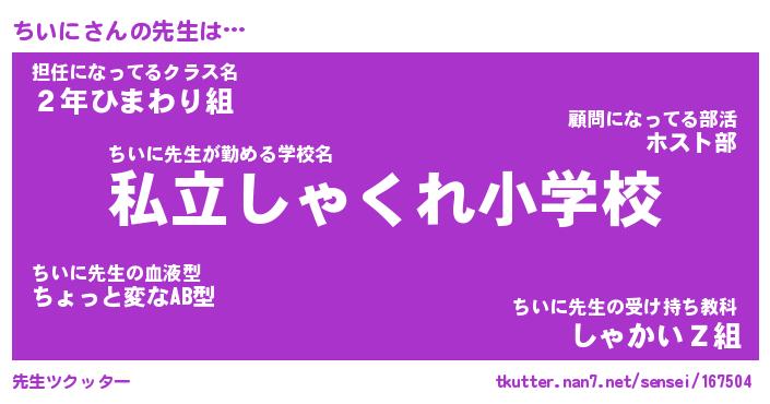 | ヘコむあだ名 | 『ちいっふぃ~』『豆乳』『ちいを』 |