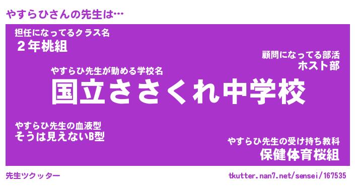 | ファンタジー風あだ名 | 『ヤスフェル』『エターナルヤスラヒー』 |