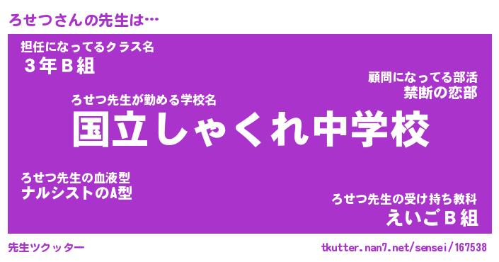 | 意味不明あだ名 | 『ペロリンろせつ』『ろせつフォーエバー』 |