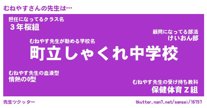 | 肩書あだ名 | 『むねやす御曹司』『むねやす国家主席』 |