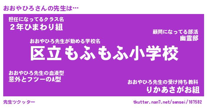 | ファンタジー風あだ名 | 『オオフェル』『エターナルオオヤヒロー』 |