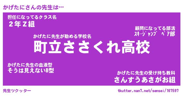 | ヘコむあだ名 | 『かげもー』『豆乳』『かげっぺ』 |