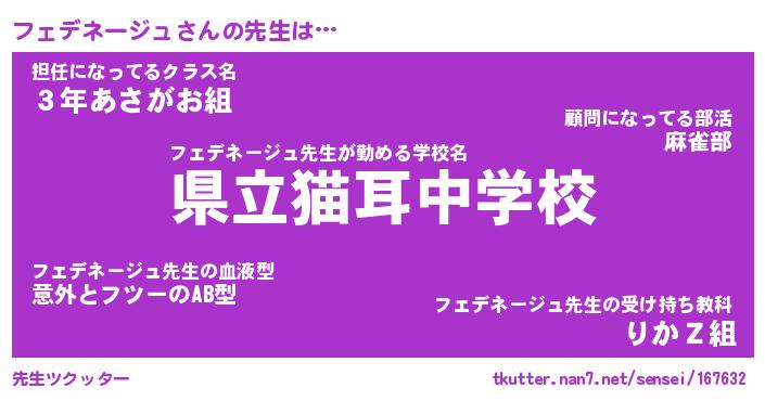 | ファンタジー風あだ名 | 『フェフェル』『ファントムフェス』 |