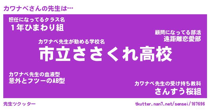| 意味不明あだ名 | 『ペロリンカワナベ』『永久保存カワナベ』 |