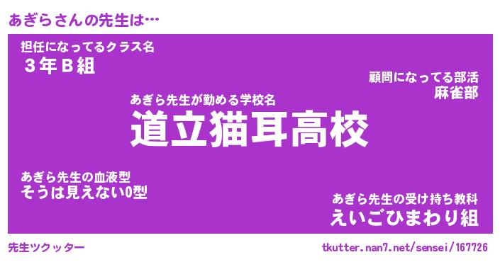 | ヘコむあだ名 | 『あぎにー』『酢こんぶ』『あぎ太郎』 |