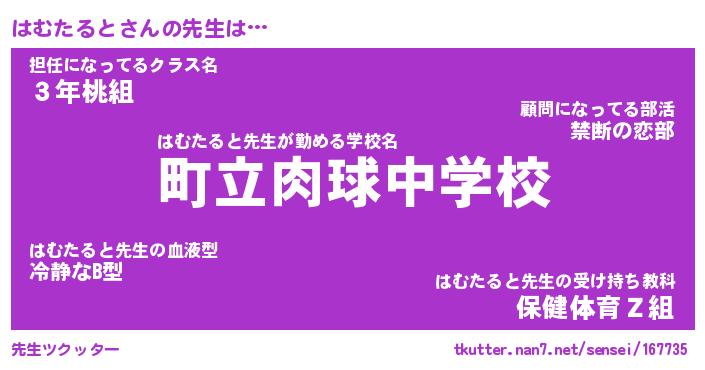 | ファンタジー風あだ名 | 『ハムフェル』『エターナルハムタルトー』 |