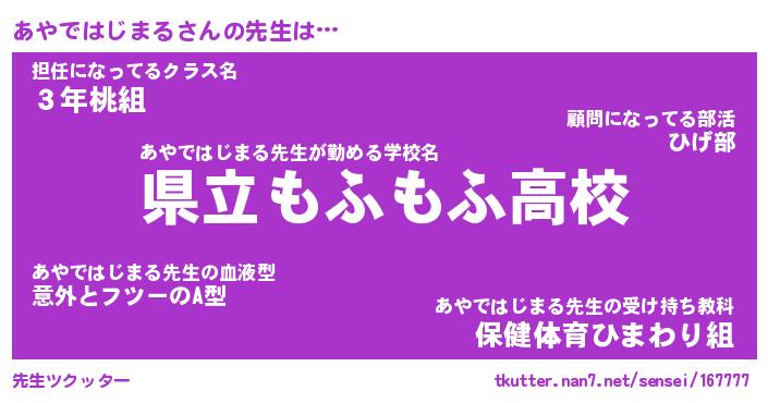 | ヘコむあだ名 | 『あやにゅー』『酢こんぶ』『あやお』 |