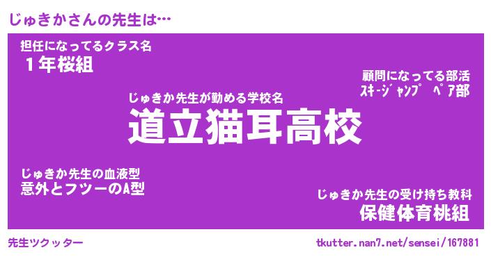 | ファンタジー風あだ名 | 『ジュフェル』『エターナルジュキカー』 |