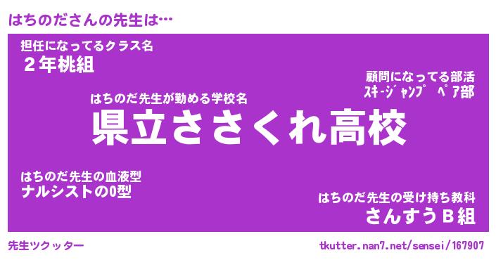 | 意味不明あだ名 | 『ペロリンはちのだ』『永久保存はちのだ』 |