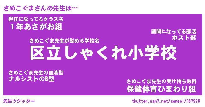 | ヘコむあだ名 | 『さめっふぃ~』『つくし』 |