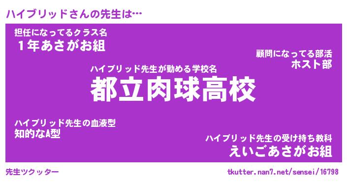 | ヒーロー風カッコイイあだ名 | 『スーパーハイブリッド』『銀牙騎士ハイ』 |