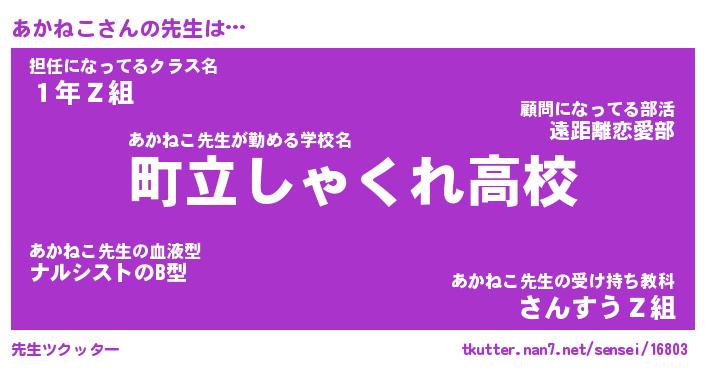 | 意味不明あだ名 | 『ペロリンあかねこ』『永久保存あかねこ』 |