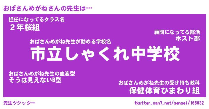 | 伝説のあだ名 | 『伝説のスナイパーおばさんめがね』 |