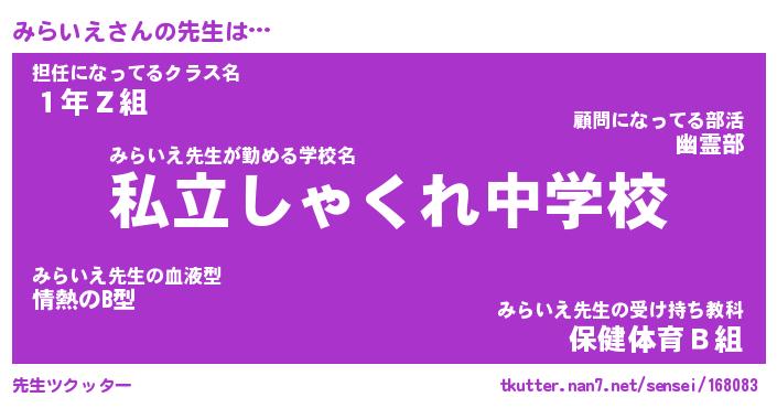意味不明あだ名 | 『ペロリンみらいえ』『永久保存みらいえ』 |
