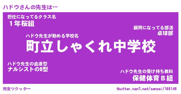 | ヘコむあだ名 | 『ハドっふぃ~』『つくし』『ハドお』 |