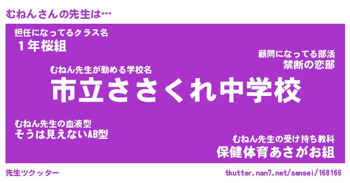| ヘコむあだ名 | 『むねもー』『つくし』『むねっぺ』 |