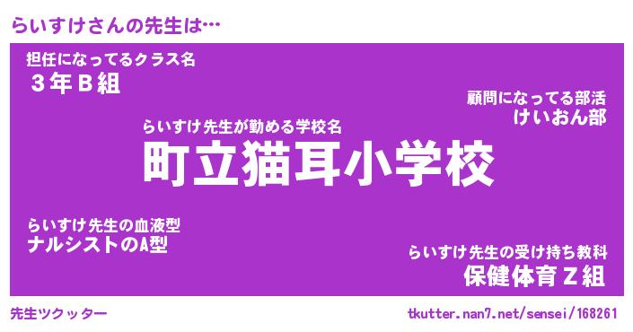 | 意味不明あだ名 | 『ペロリンらいすけ』『永久保存らいすけ』 |