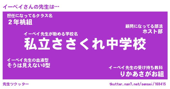 | 意味不明あだ名 | 『ペロリンイーベイ』『永久保存イーベイ』 |