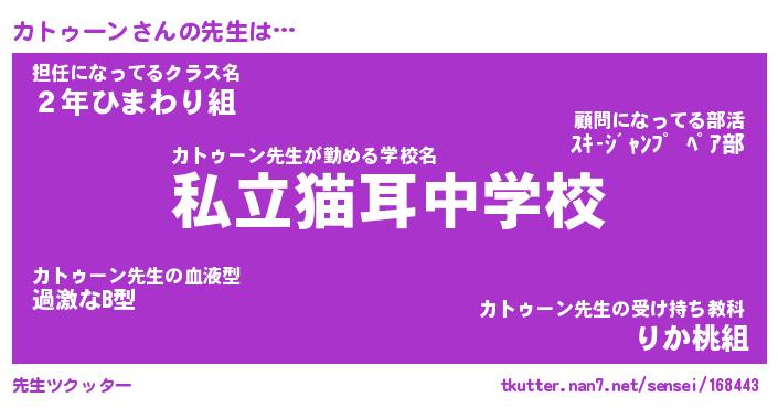 | ファンタジー風あだ名 | 『カトフェル』『エターナルカトゥーンー』 |