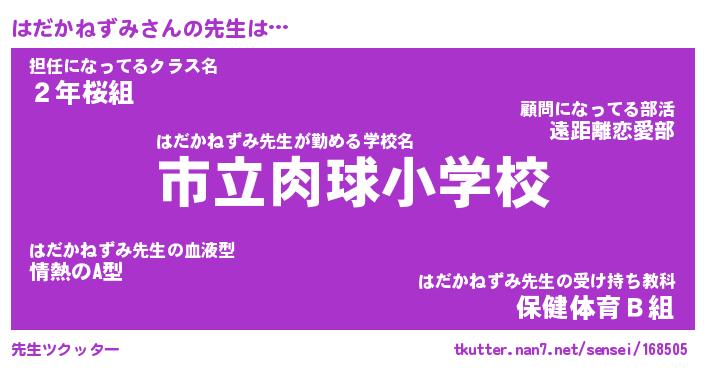 | ヘコむあだ名 | 『はだふぇ~』『なまこ酢』『はだお』 |