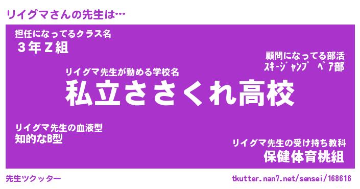 | 意味不明あだ名 | 『ペロリンリイグマ』『永久保存リイグマ』 |