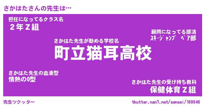 | 意味不明あだ名 | 『ペロリンさかはた』『永久保存さかはた』 |