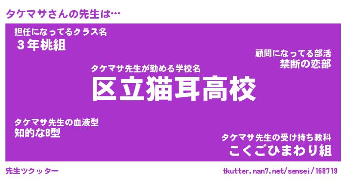 | ヒーロー風カッコイイあだ名 | 『スーパータケマサ』『暗黒騎士タケ』 |