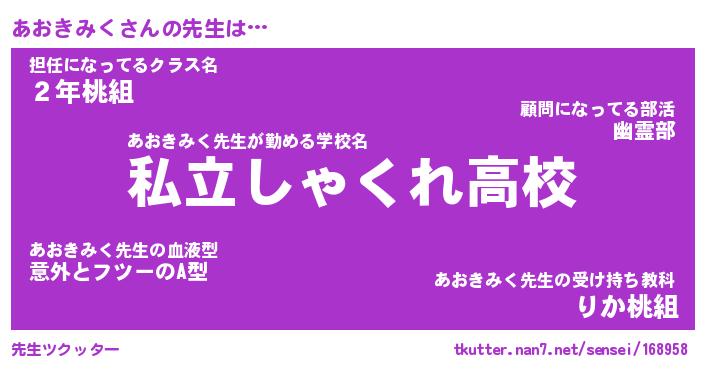 | 肩書あだ名 | 『あおきみく御曹司』『あおきみく校長』 |
