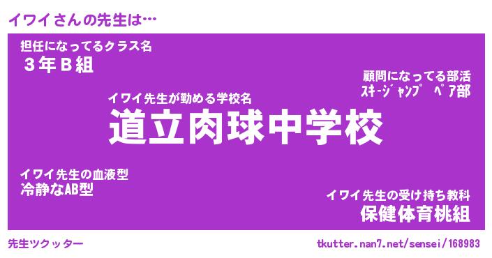 | 意味不明あだ名 | 『ペロリンイワイ』『イワイフォーエバー』 |
