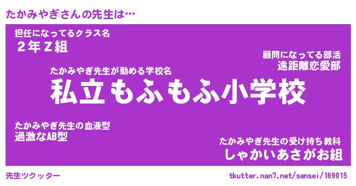 | ファンタジー風あだ名 | 『タカフェル』『エターナルタカミヤギー』 |