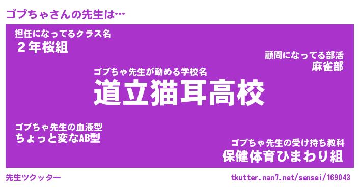 | ポケモン風あだ名 | 『ゴブチュウ』『ゴブチダネ』 |