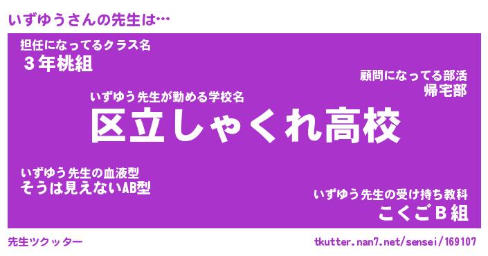 | 意味不明あだ名 | 『ペロリンいずゆう』『永久保存いずゆう』 |