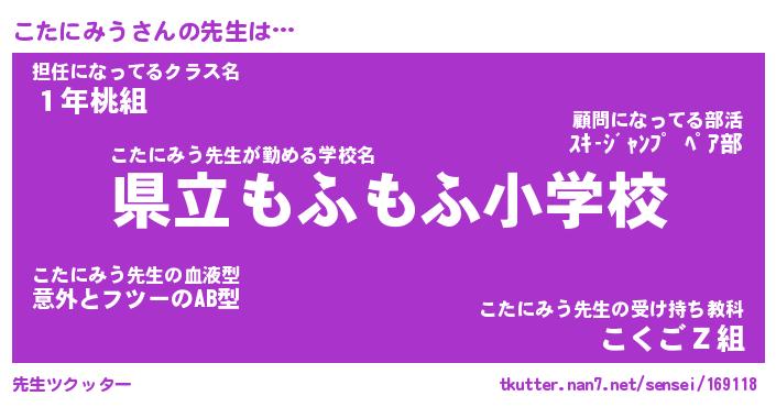 | ファンタジー風あだ名 | 『コタフェル』『エターナルコタニミウー』 |