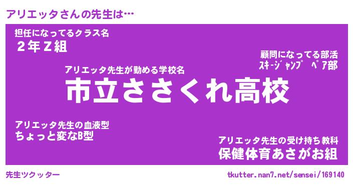 | ファンタジー風あだ名 | 『アリフェル』『エターナルアリエッター』 |