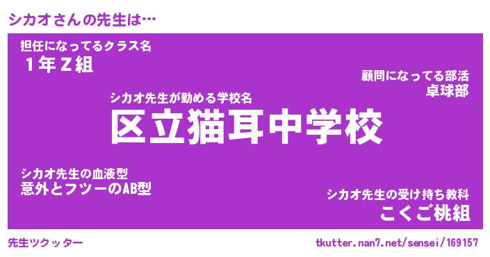 | ファンタジー風あだ名 | 『シカフェル』『エターナルシカオー』 |