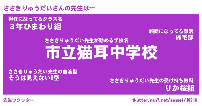 | ポケモン風あだ名 | 『ササチュウ』『ササキダネ』 |