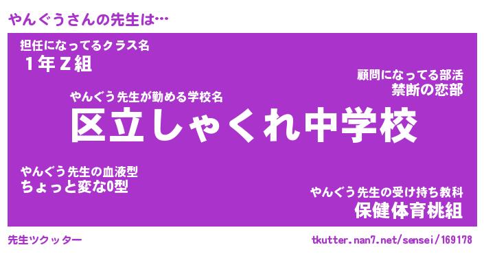 | 意味不明あだ名 | 『ペロリンやんぐう』『永久保存やんぐう』 |