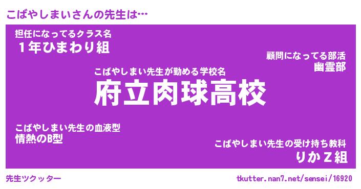 | ヒーロー風カッコイイあだ名 | 『スーパーコバヤシマイ』『銀牙騎士コバ』 |