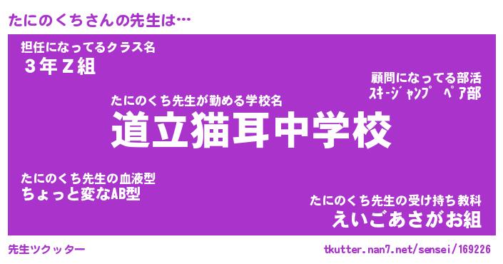 | ピコ太郎風あだ名 | 『タコ次郎』『ピタ三郎』『タニ四郎』 |