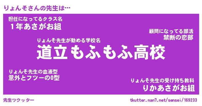 | ファンタジー風あだ名 | 『リョフェル』『エターナルリョンソー』 |