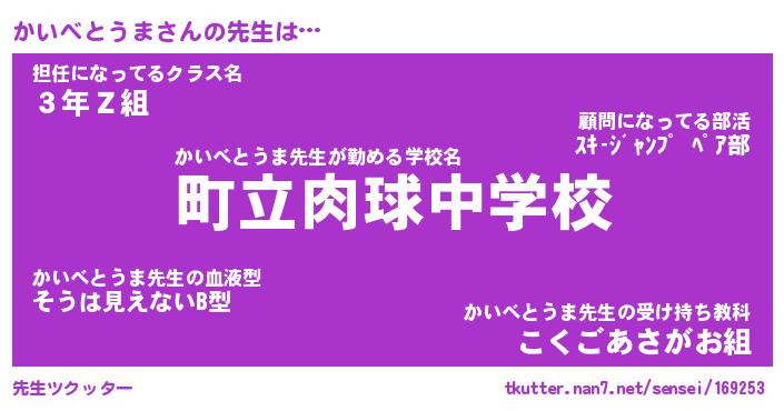 | 伝説のあだ名 | 『封印されし竜騎士かいべとうま』 |