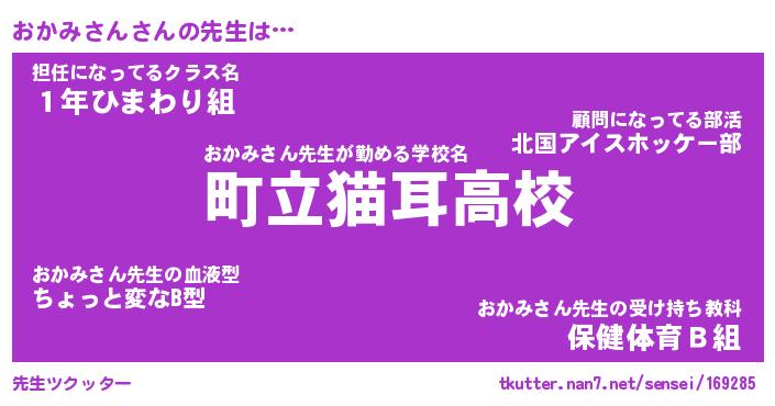 | ファンタジー風あだ名 | 『オカフェル』『エターナルオカミサンー』 |