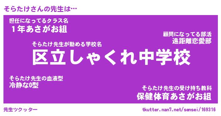 | 意味不明あだ名 | 『ペロリンそらたけ』『永久保存そらたけ』 |
