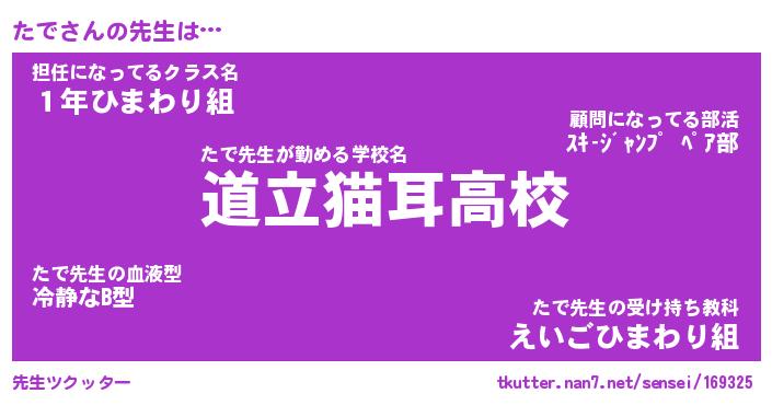 | ヘコむあだ名 | 『たでにー』『牛乳』『たで太郎』 |