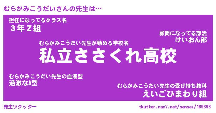 | 意味不明あだ名 | 『ペロリンむらかみこうだい』 |
