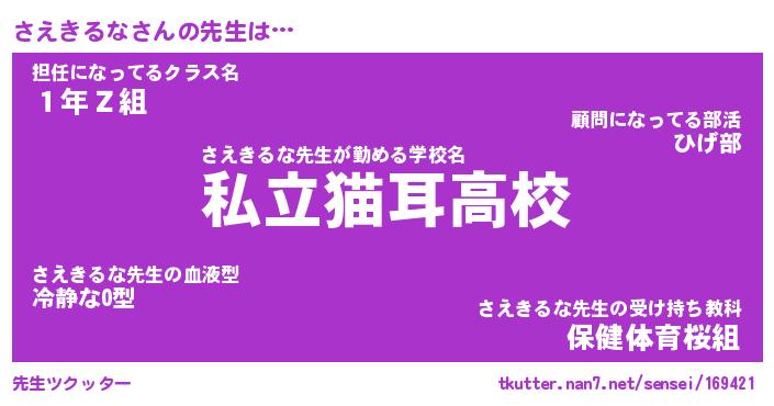 | ファンタジー風あだ名 | 『サエフェル』『エターナルサエキルナー』 |