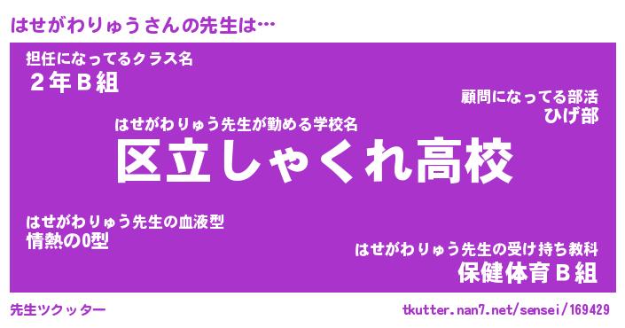 | 伝説のあだ名 | 『封印されしスナイパーはせがわりゅう』 |