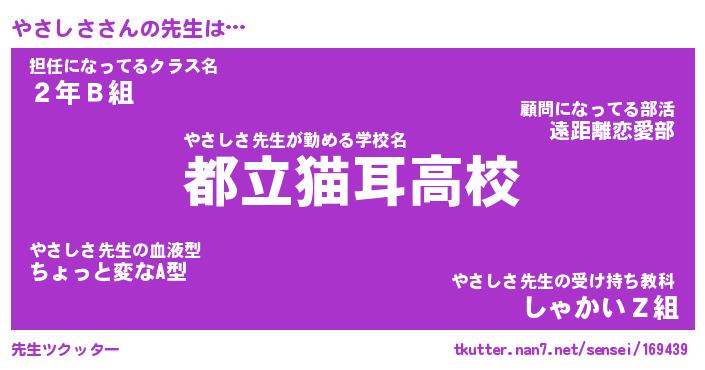 | ヘコむあだ名 | 『やさにー』『豆乳』『やさっ子』 |