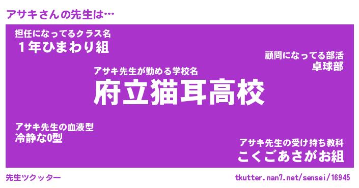 | ヒーロー風カッコイイあだ名 | 『スーパーアサキ』『ウルトラアサキマン』 |