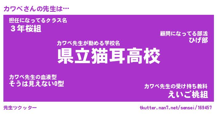 | 意味不明あだ名 | 『ペロリンカワベ』『カワベフォーエバー』 |